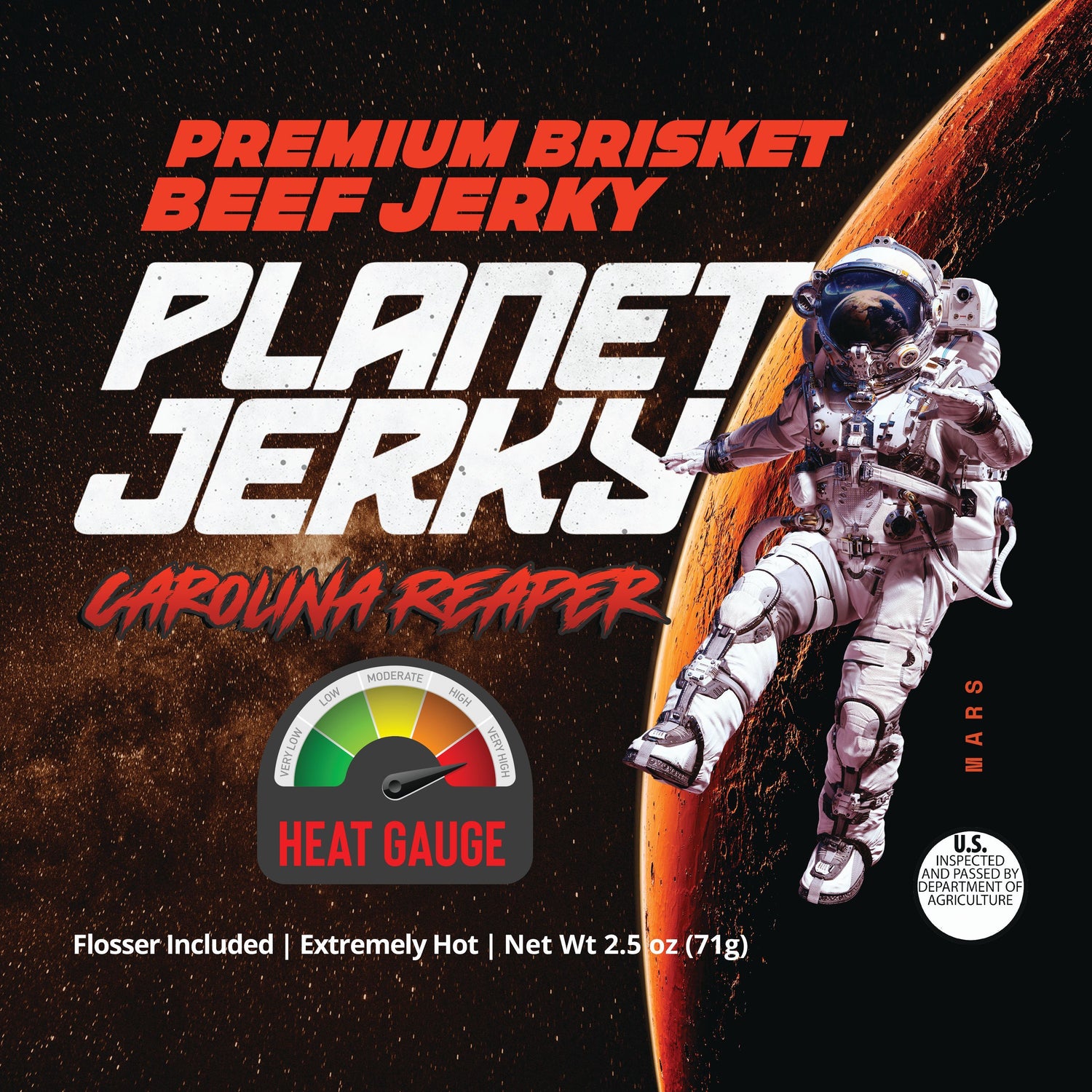 Tender mouthwatering Brisket Jerky with multiple flavors ranging from non-spicy to extreme heat. Gluten free options with no sodium nitrate as a preservative.